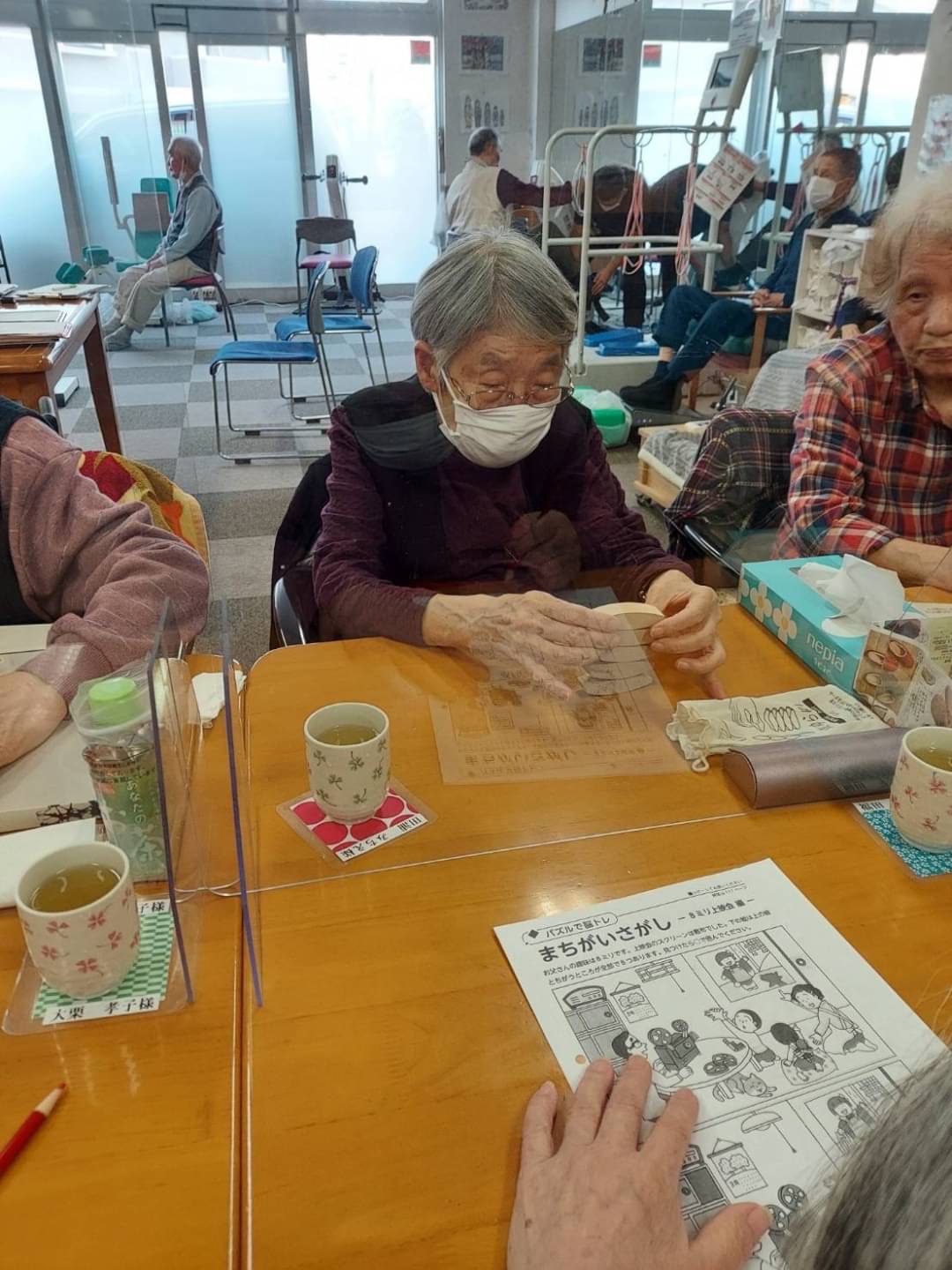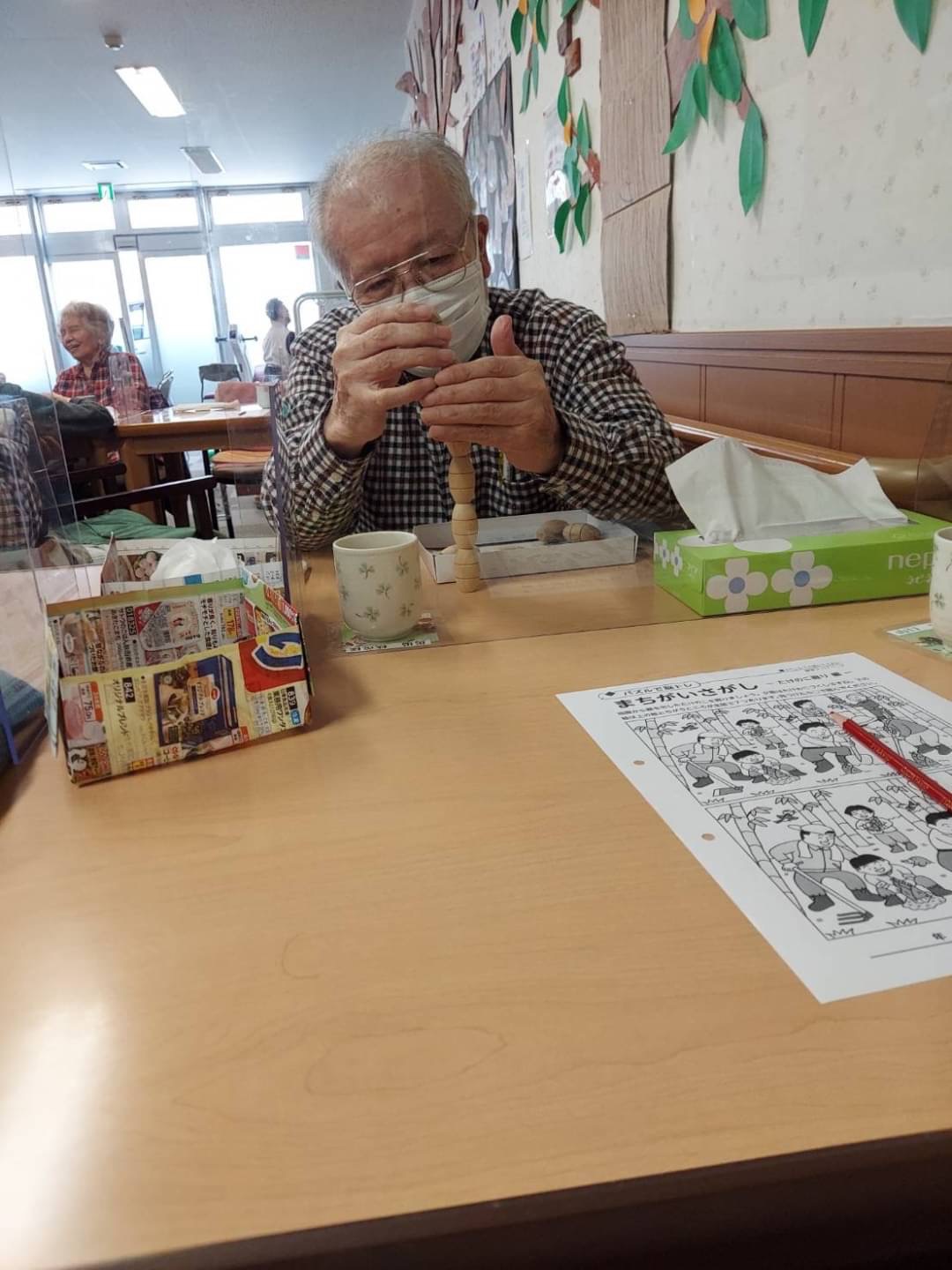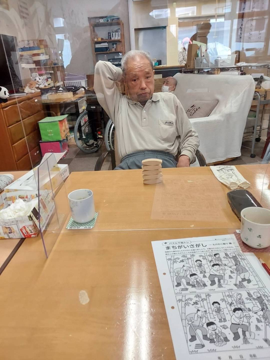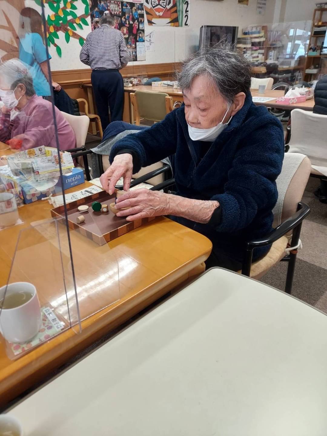 こころ萩原では、自席で座りながらでも、遊び感覚で楽しんでいただけるリハビリを行なっています