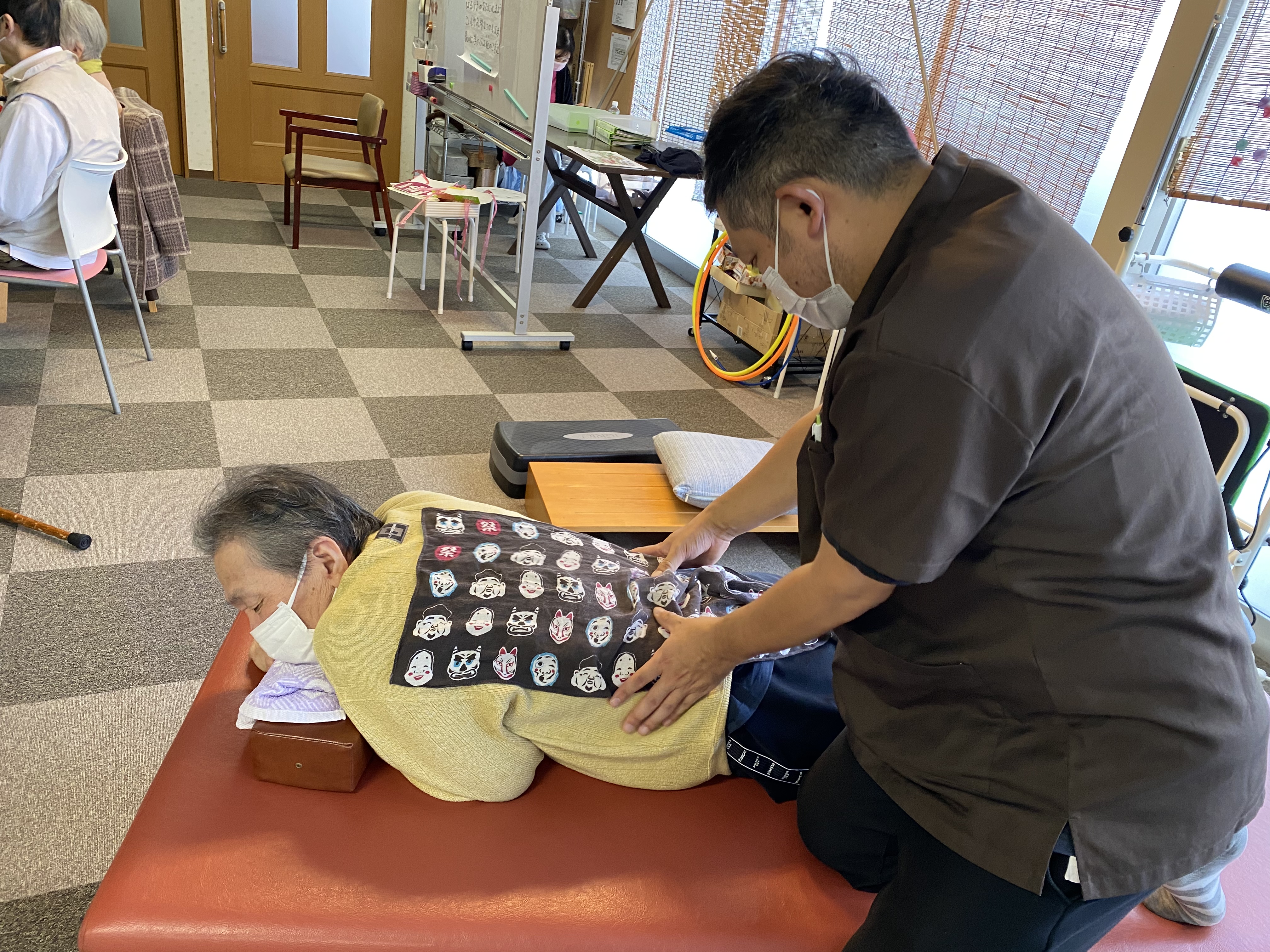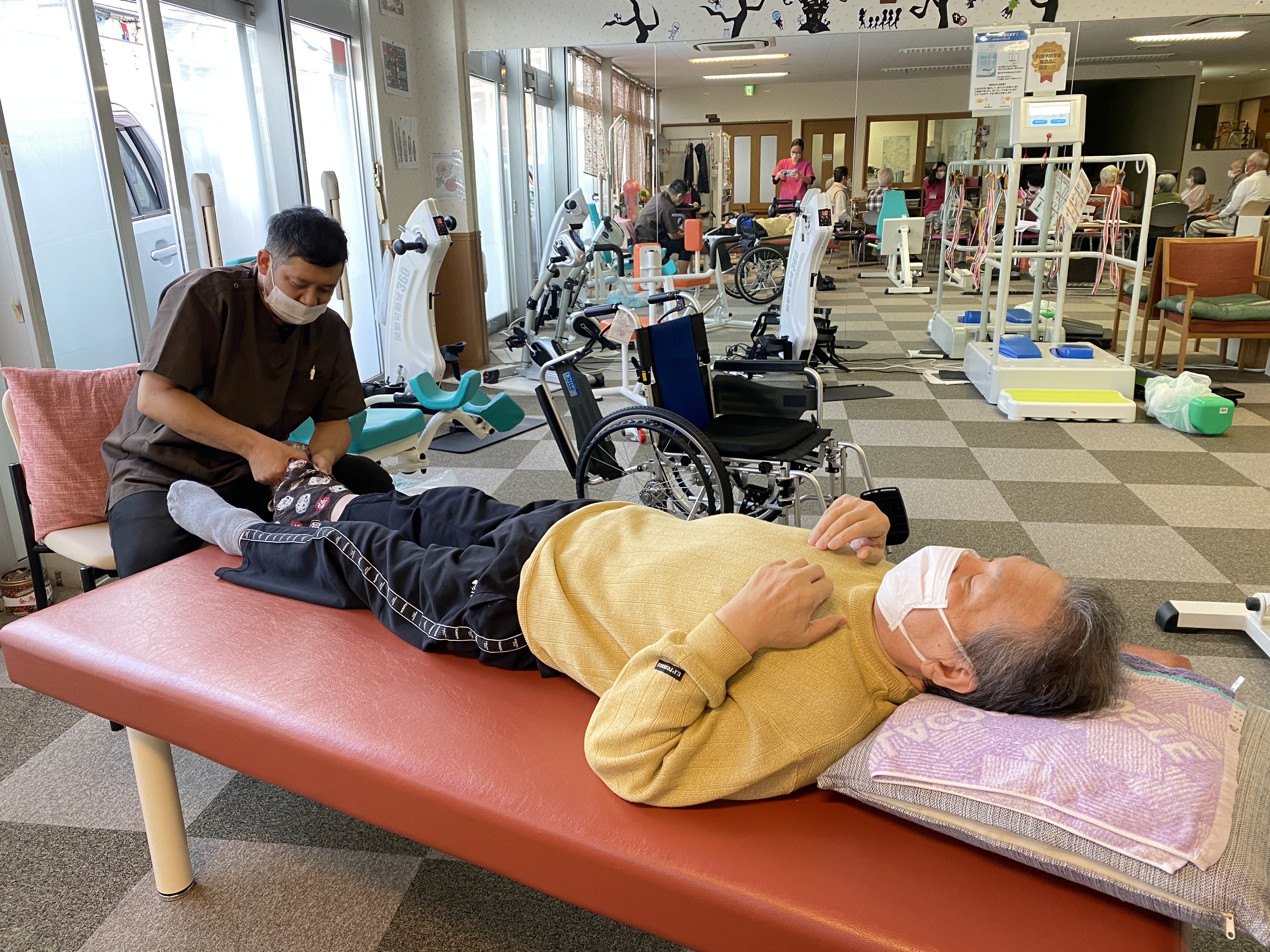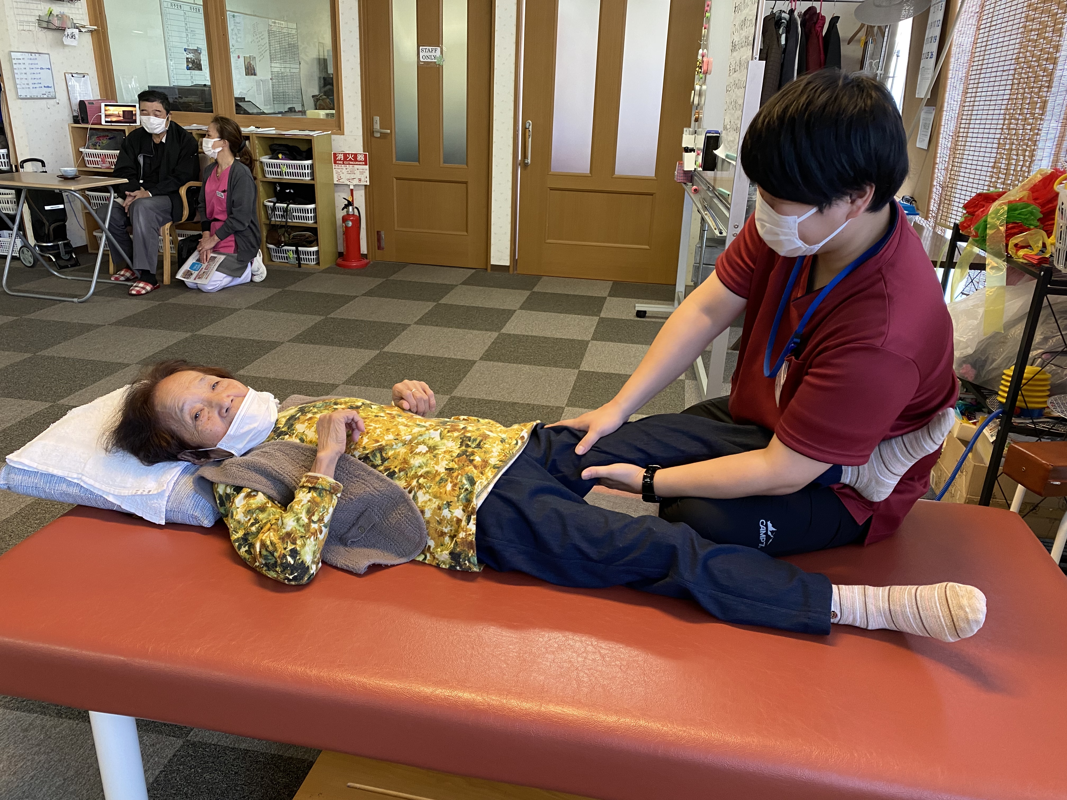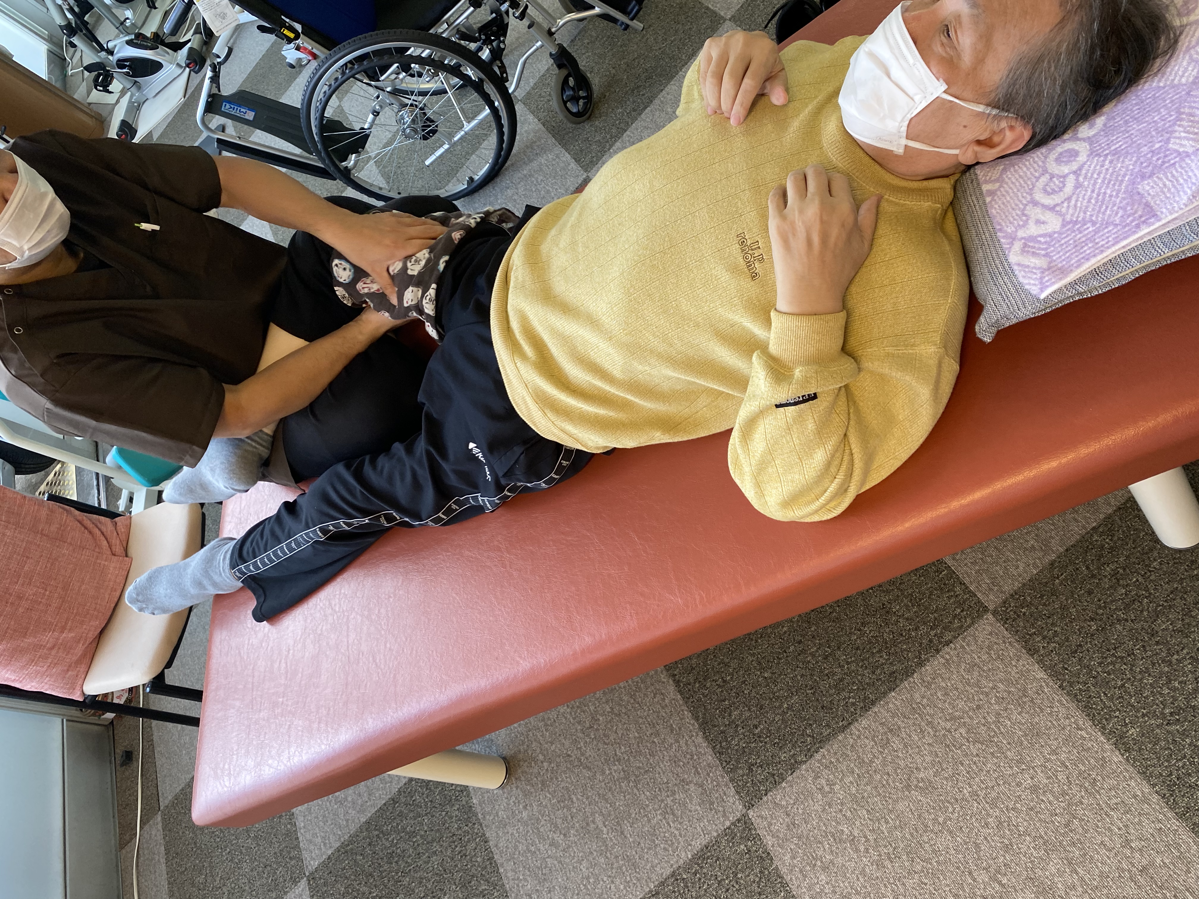 こちらも鍼灸師・理学療法士によるベッド上でのリハビリです