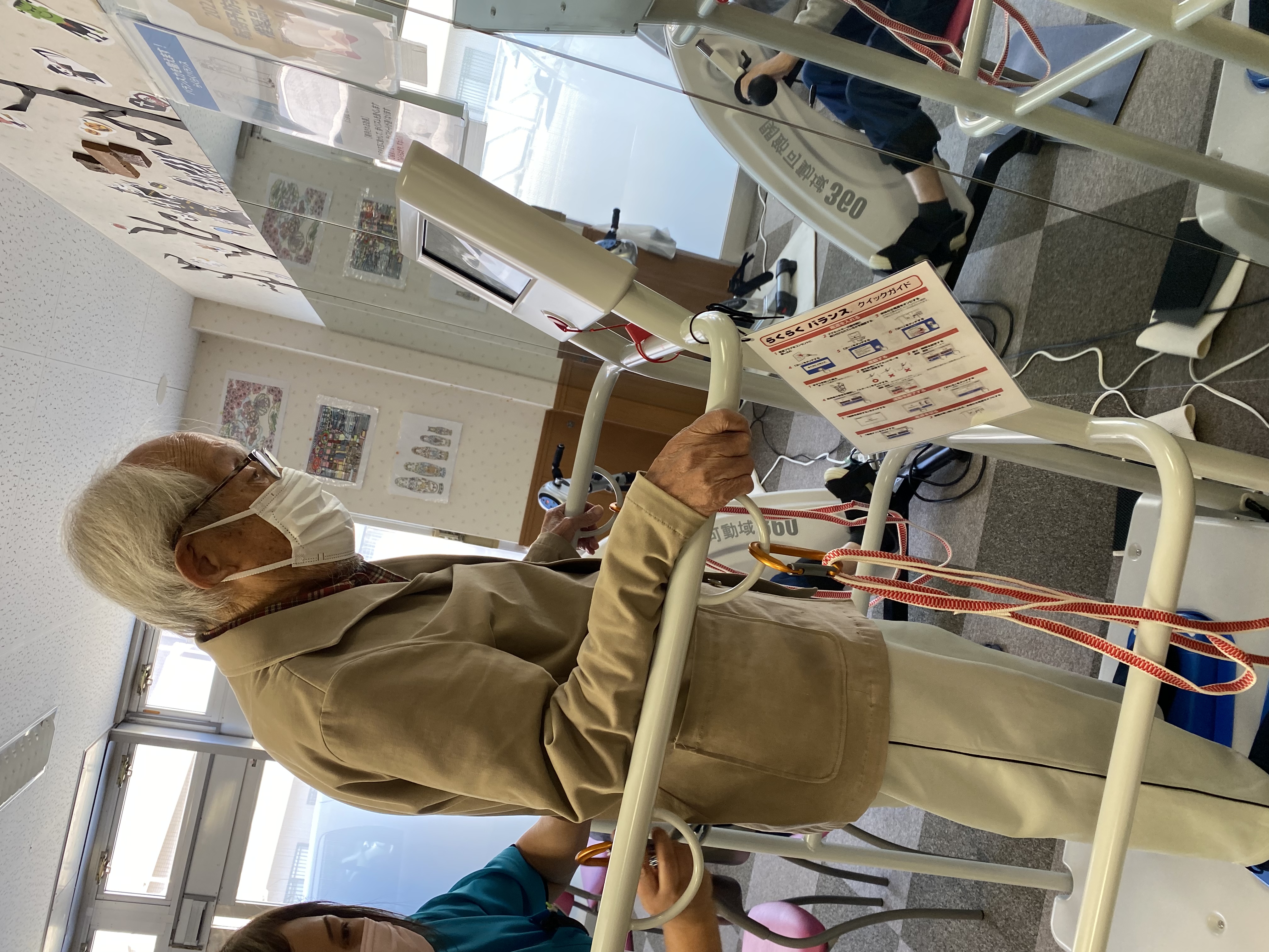体幹を鍛えながら、前にあるモニターで問題を解いたり脳トレもできるマシーンです。