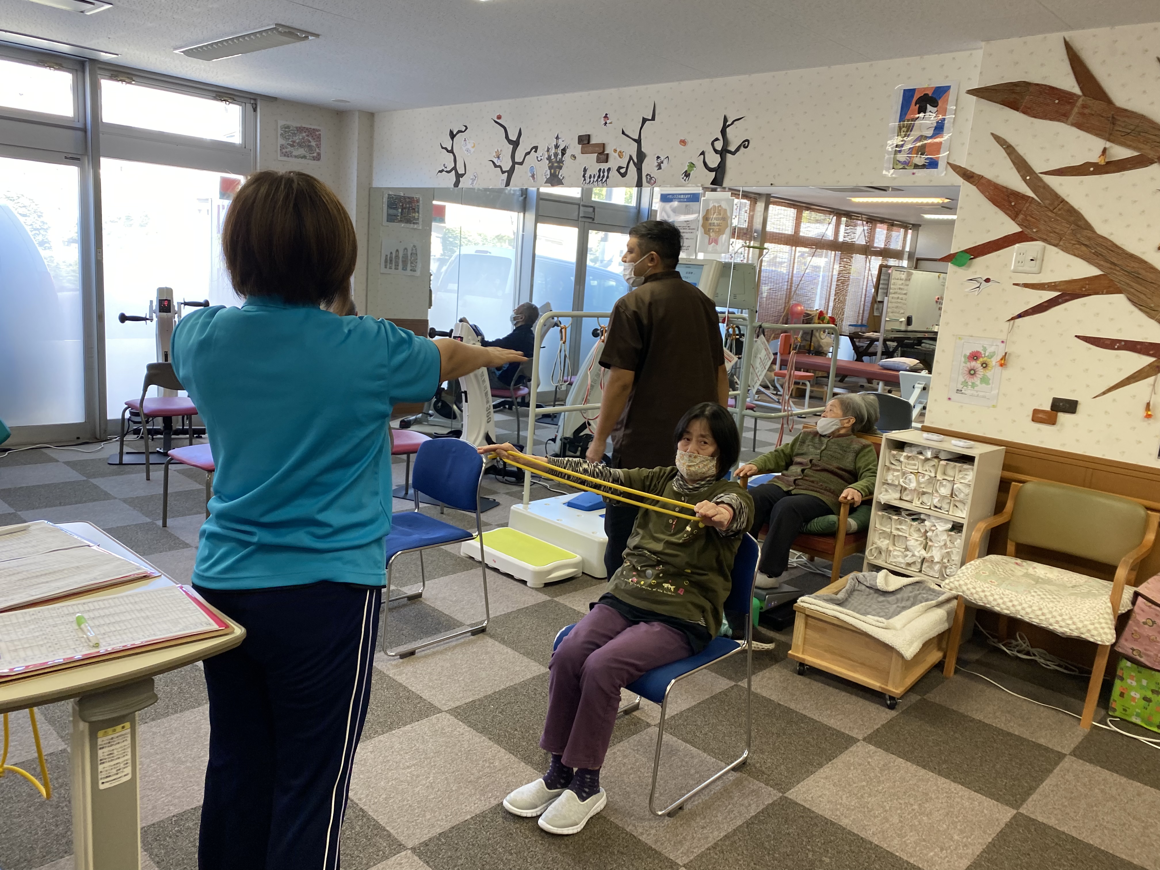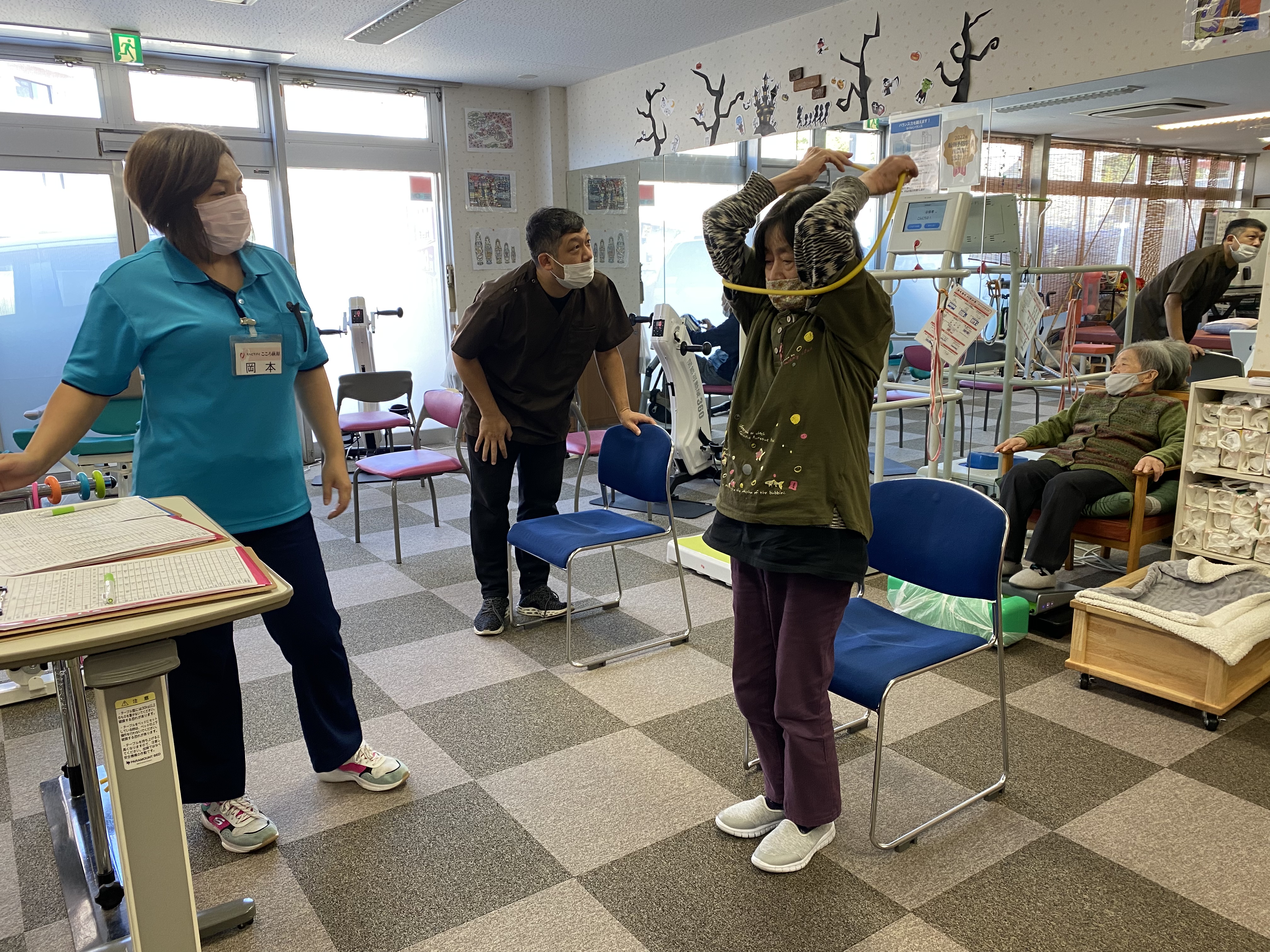 こころ萩原では、毎日このような運動をスタッフが計画し、1人1人のレベルに合わせたプログラムを提供しています✨