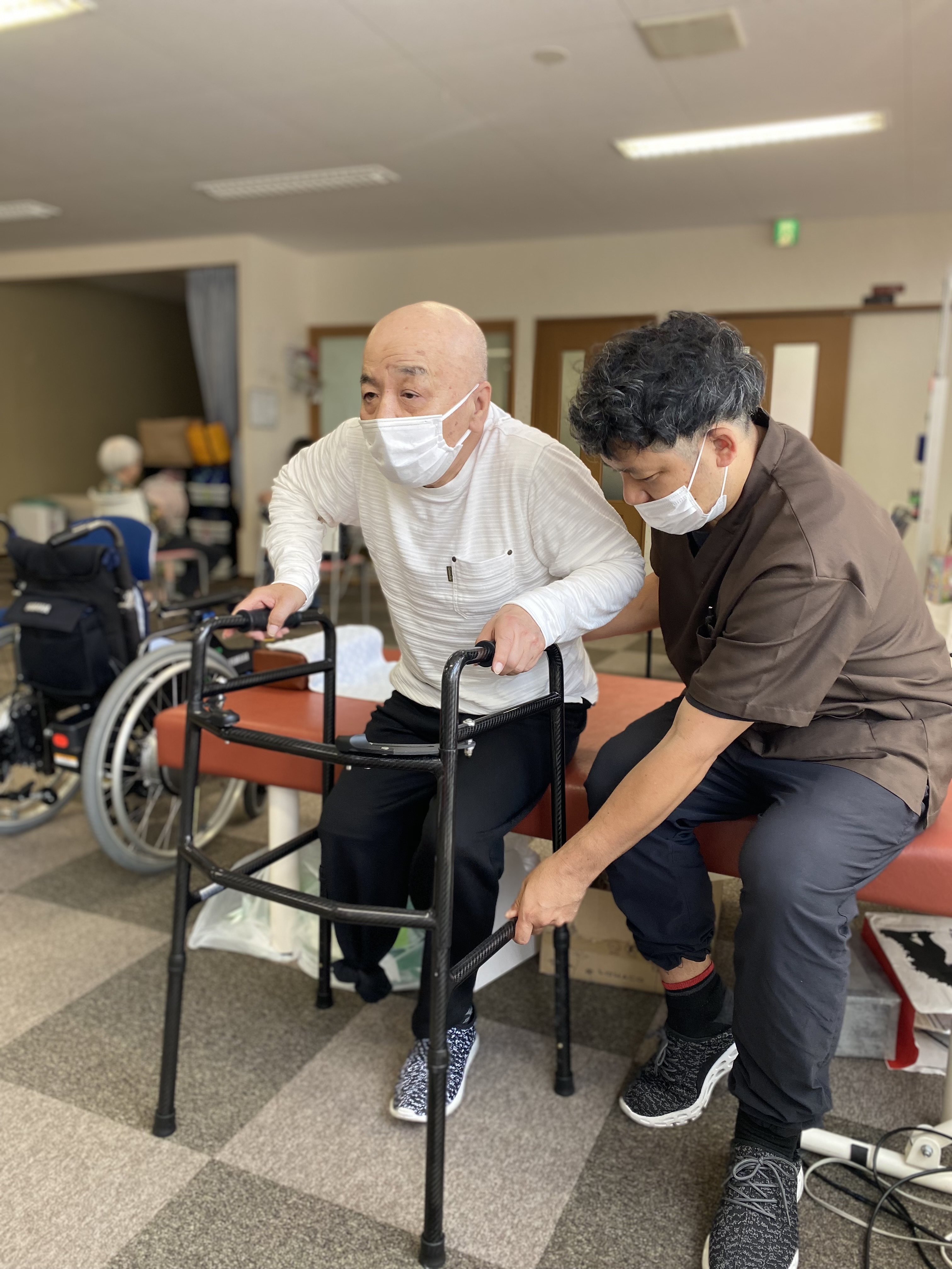 その他にも、室内だけでなく天気の良い日は屋外歩行訓練も行っています😸