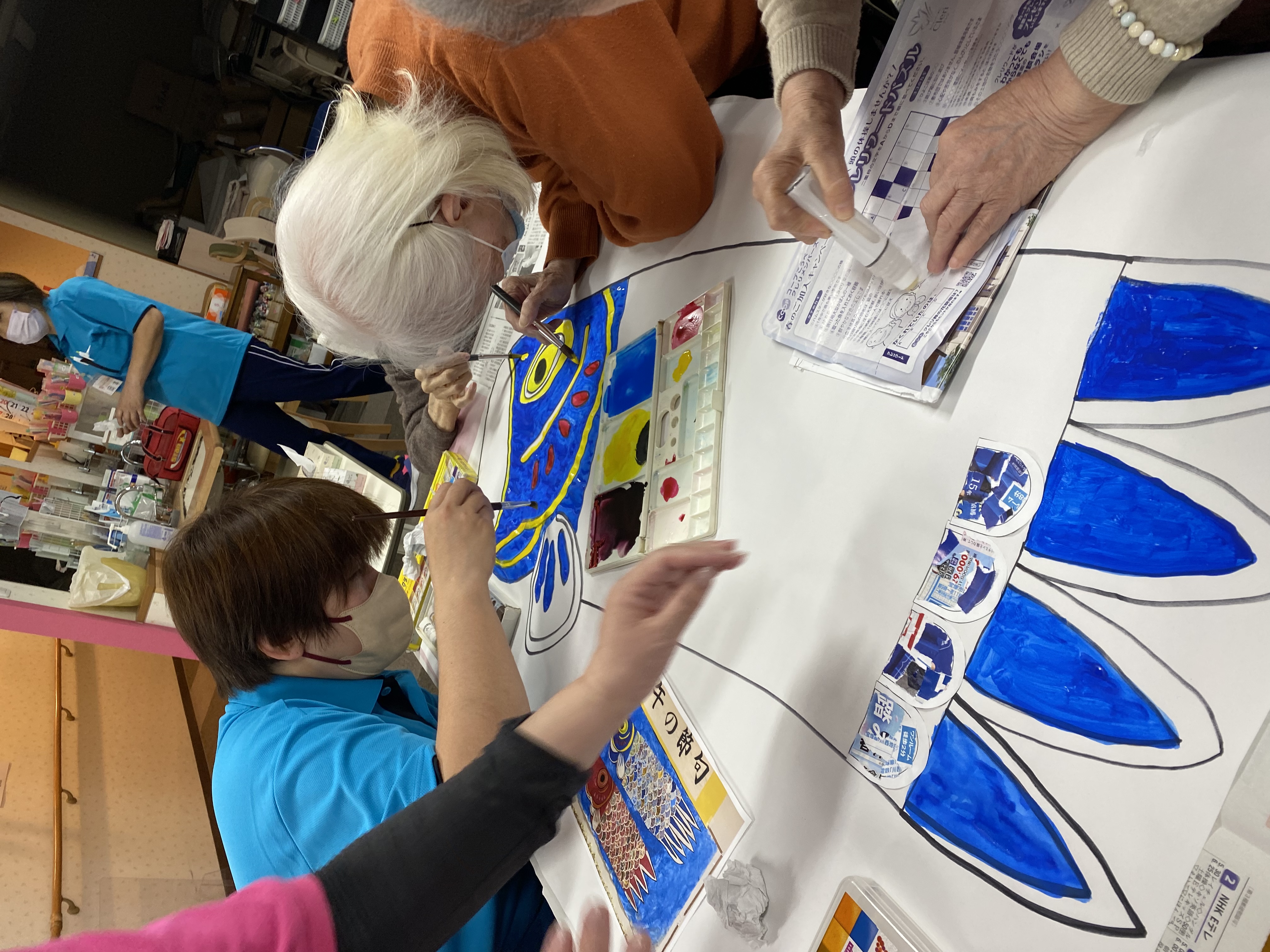 こいのぼりの製作を 曜日対抗で行なうことになり、それぞれの曜日の方が好きにデザインや色を決めて