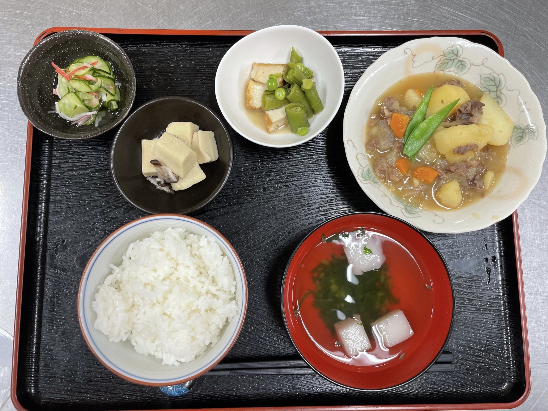 暑くなってきましたが、少し肌寒い日は 利用者様の体が冷えないよう 温まりやすいあんかけなどの食事をお出しするなど、その日の気温に合わせて、朝にメニュー変更もしたり・・・