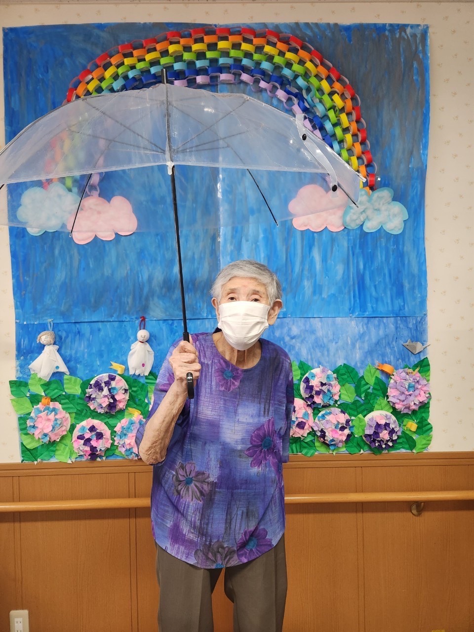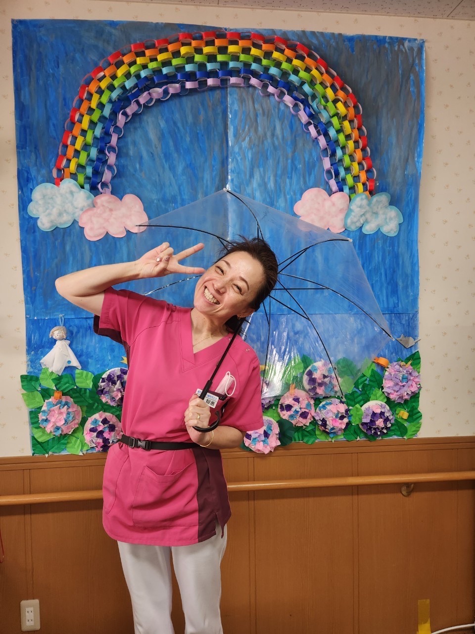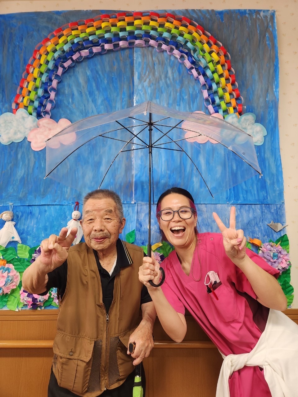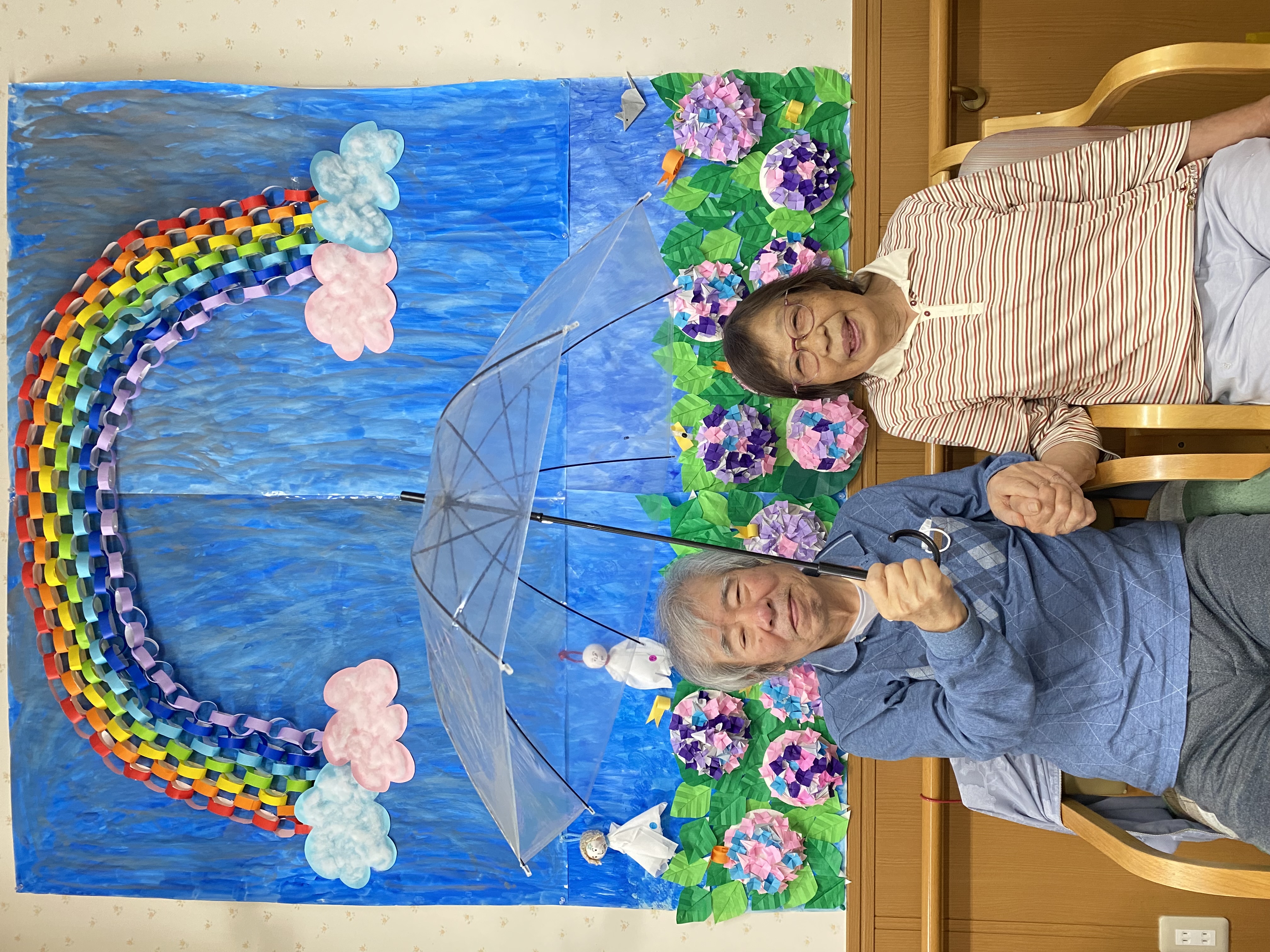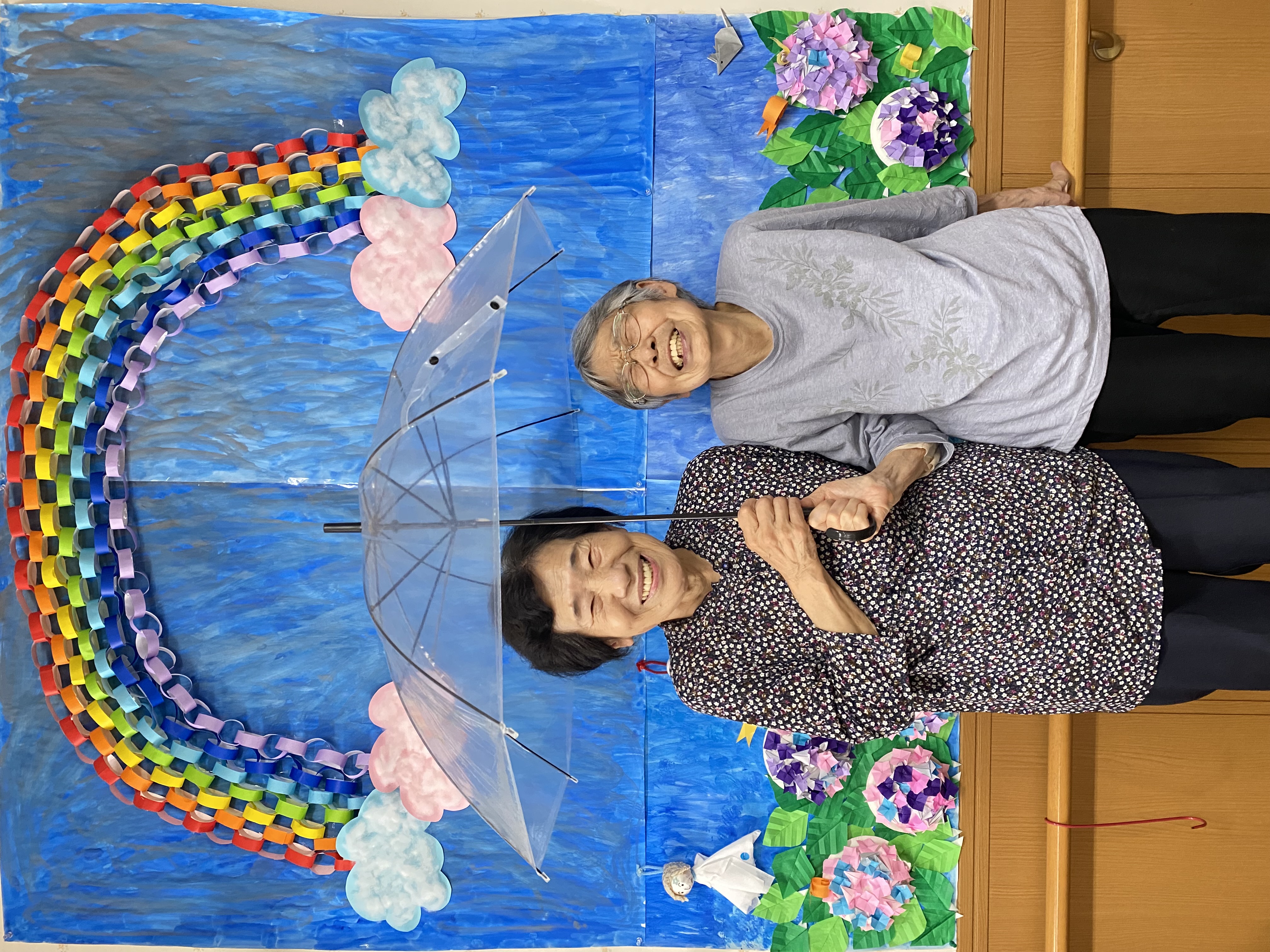 後ろの虹🌈も、利用者様が一緒に作ってくださったんですよ😊💕