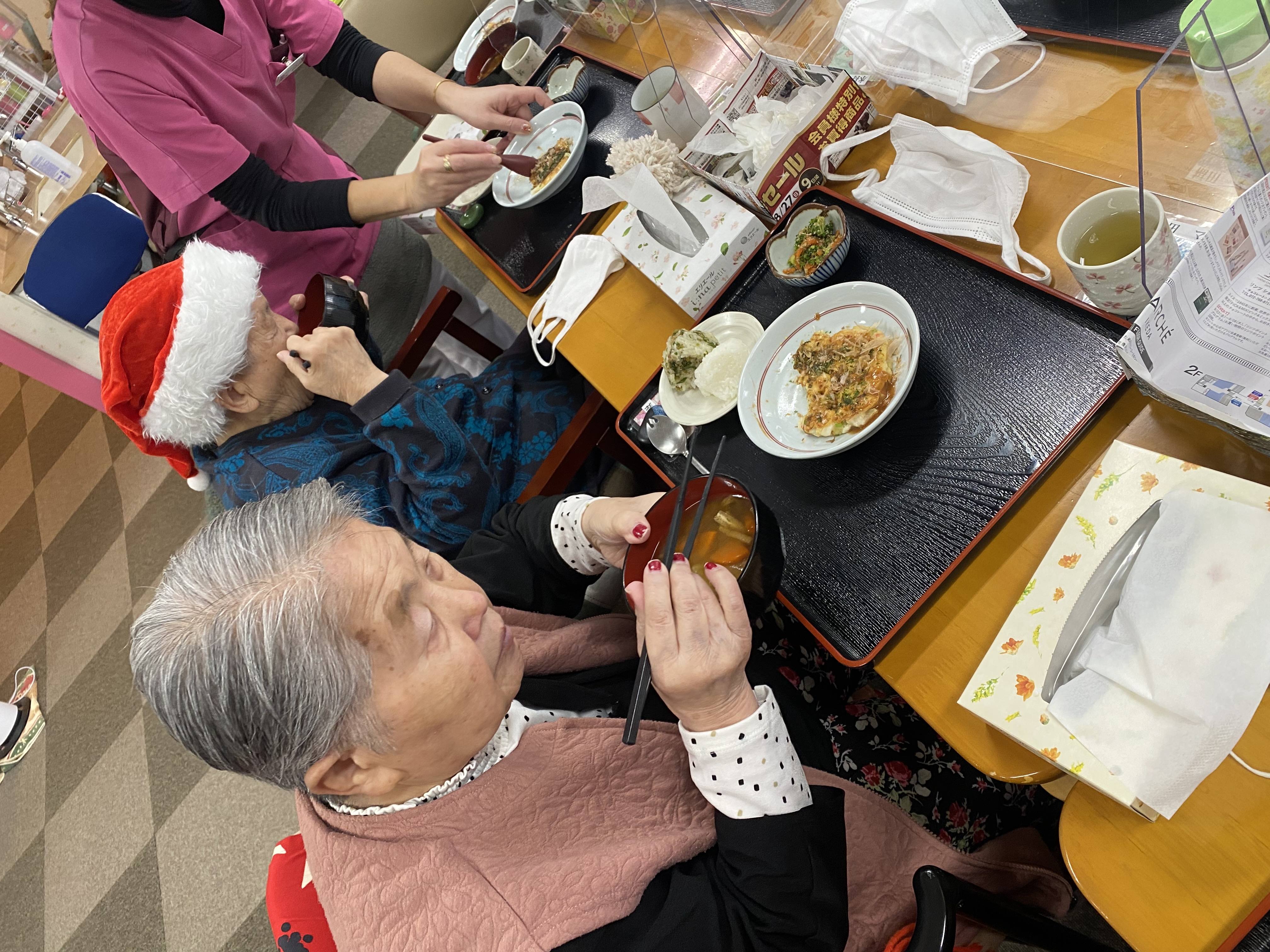 サンタスタッフが 美味しいお好み焼きをたくさん作っていきました🎅