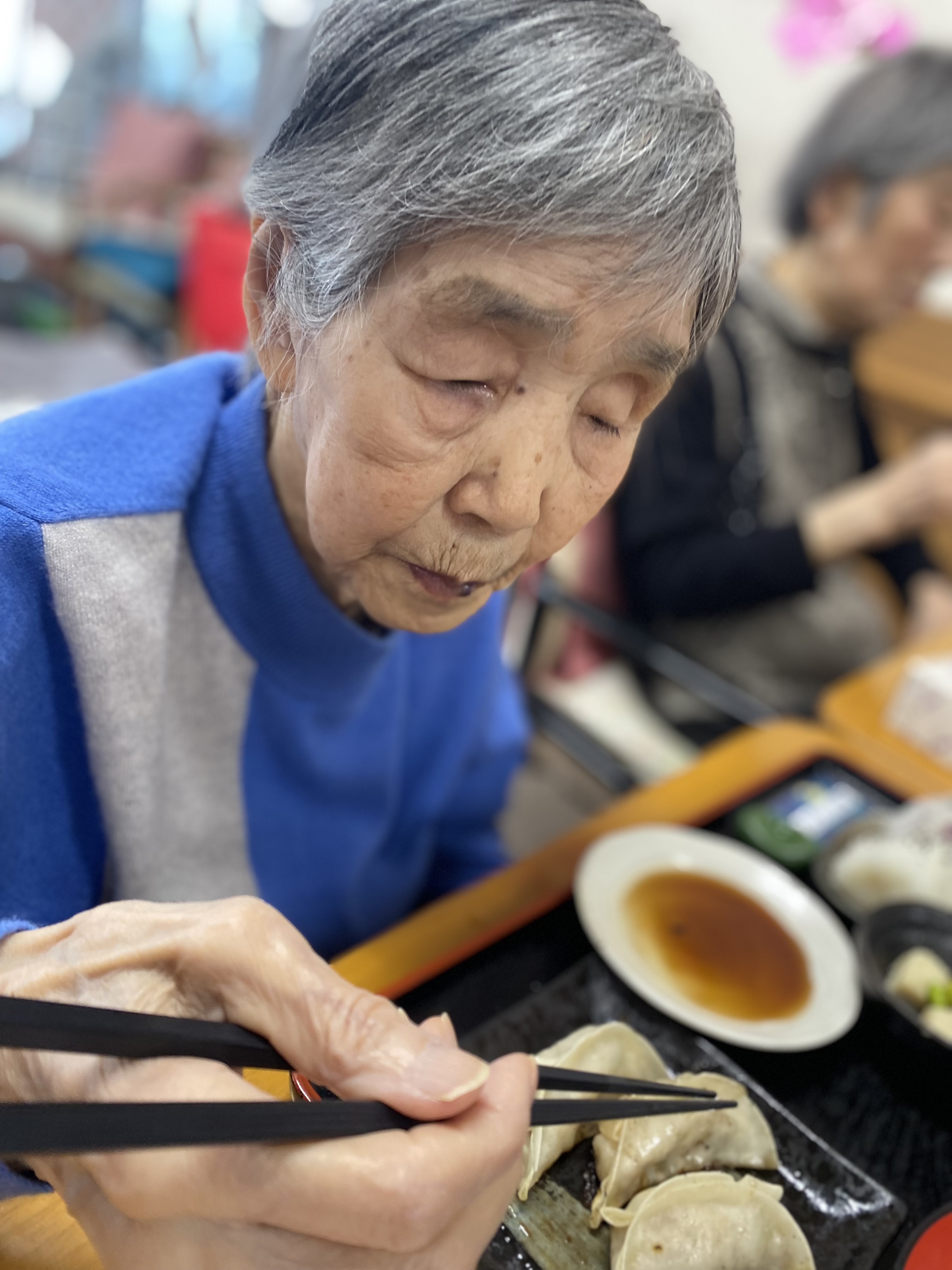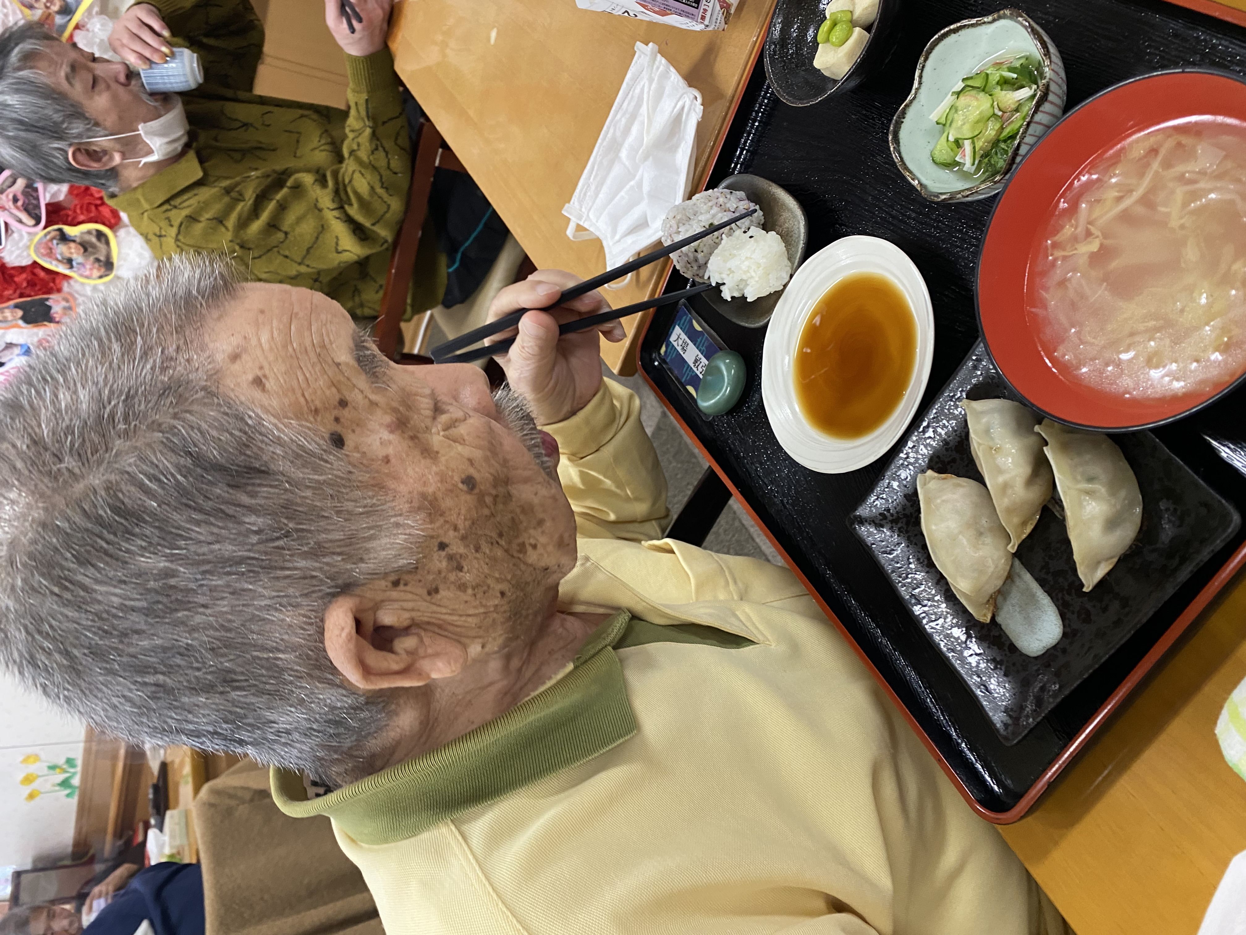 口腔体操の最中に、後ろで じゅう じゅう🥟